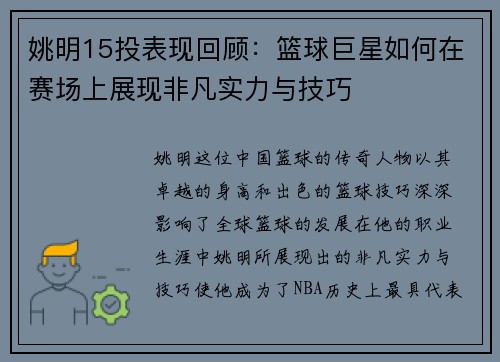 刘浩与姚明的合作不仅是两位篮球巨星的携手,更是中国篮球未来发展的重要里程碑。本文将从四个方面深入探讨他们如何共创篮球新篇章,探索中国篮球的未来与发展之路。首先,将分析两位优秀运动员的背景和成就,其次,讨论他们在推动青少年篮球发展中的作用,再者,探讨双方在职业联赛改革上的努力,最后,总结他们在国际交流...